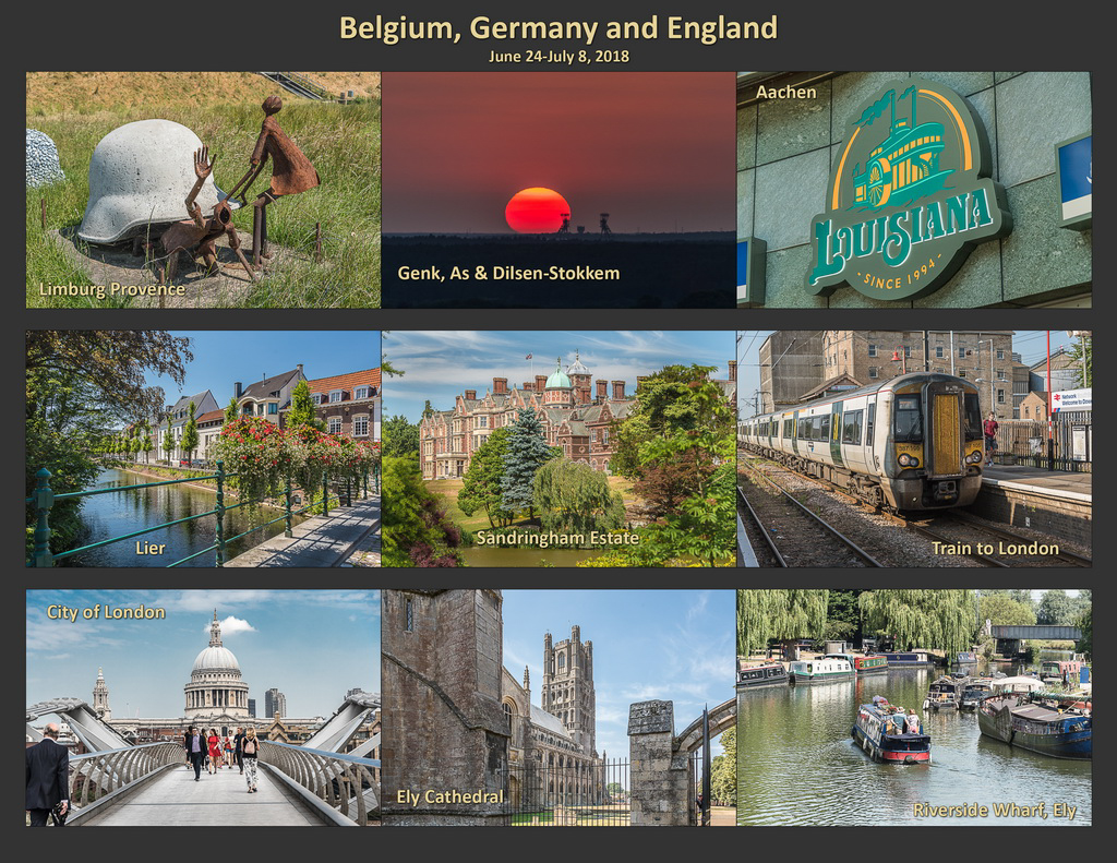 Limburg Provence Genk, As and Dilsen-Stokkem Aachen, Germany Lier, Belgium Sandringham Estate Train to London London, England Ely, England Riverside Wharf, Ely